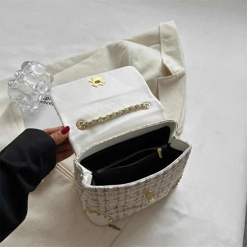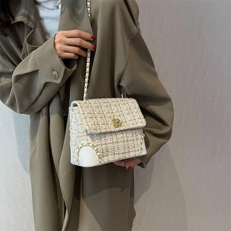 Plaid Woolen Handbag Purse Ladies Shoulder Bag Chain Crossbody