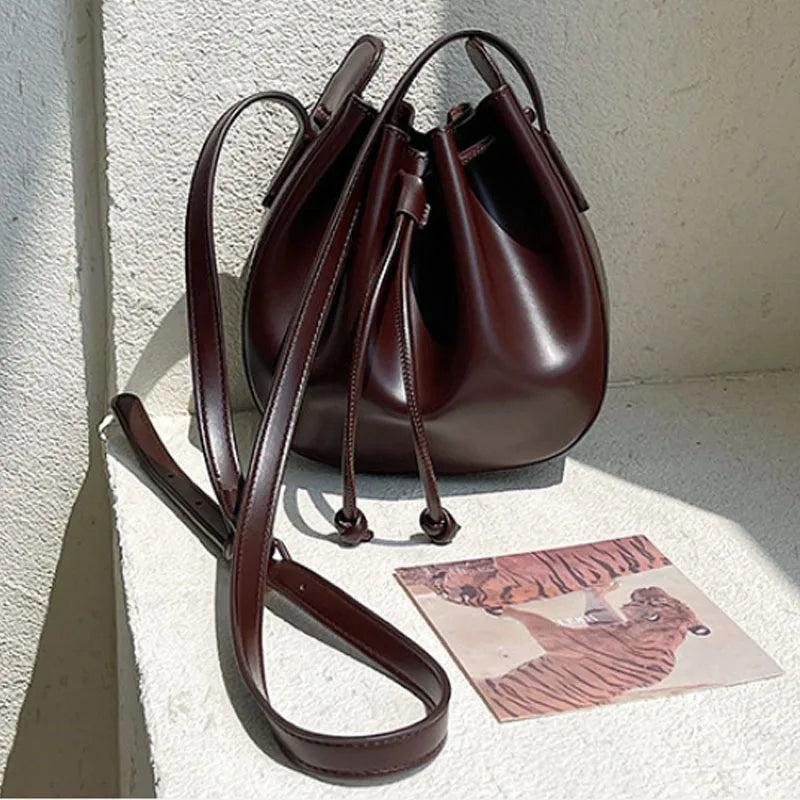 Pleated Bucket Bag Drawstring Women Handbag Shoulder Messenger Bag