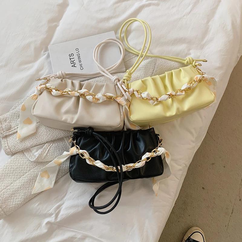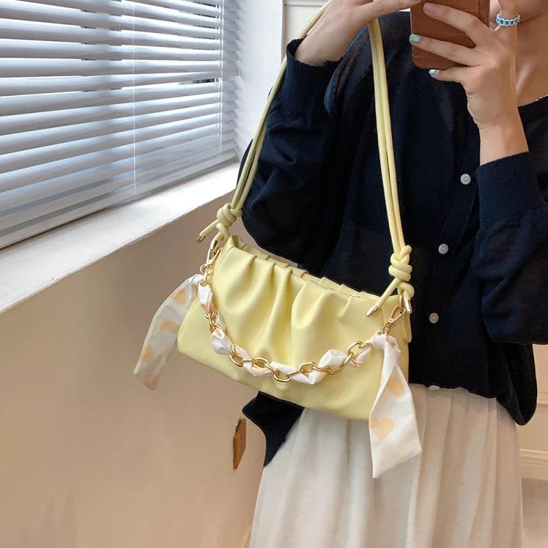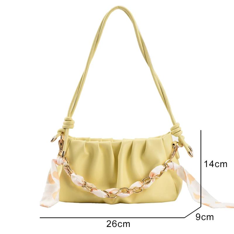 Get your hands on this stylish pleated crossbody bag that features a square design made of high-quality PU leather in a vibrant yellow color.