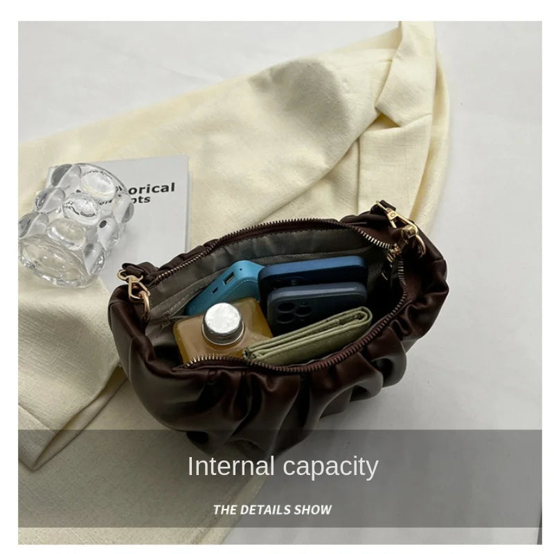 Pleated Shoulder Bag Solid PU Zipper Cross Bag Women Handbag