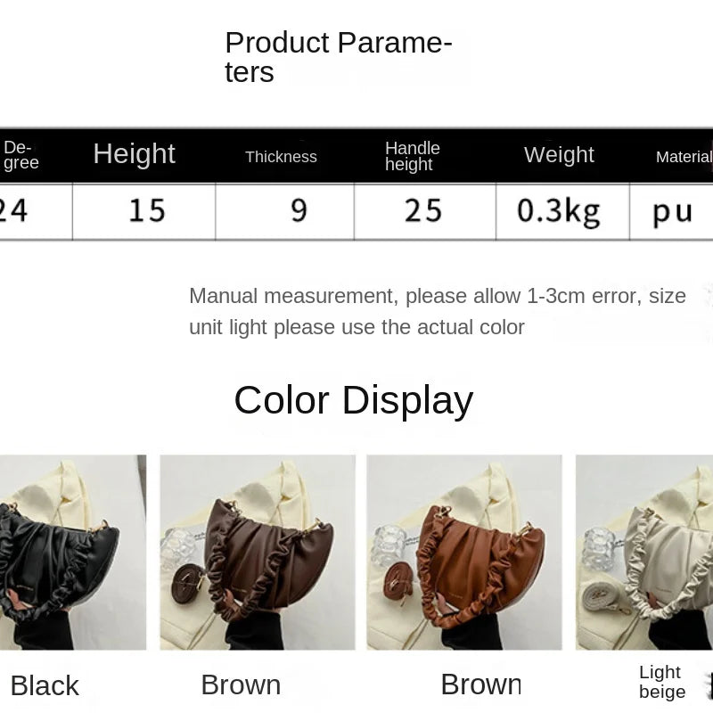 Elevate your style with this pleated shoulder bag made of high-quality PU material. It features a zipper closure and a diagonal cross design, perfect for adding a sophisticated touch to your outfit.