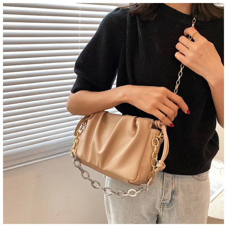 Pleated Square Armpit Bag Soft PU Leather Women's Shoulder Messenger Bag