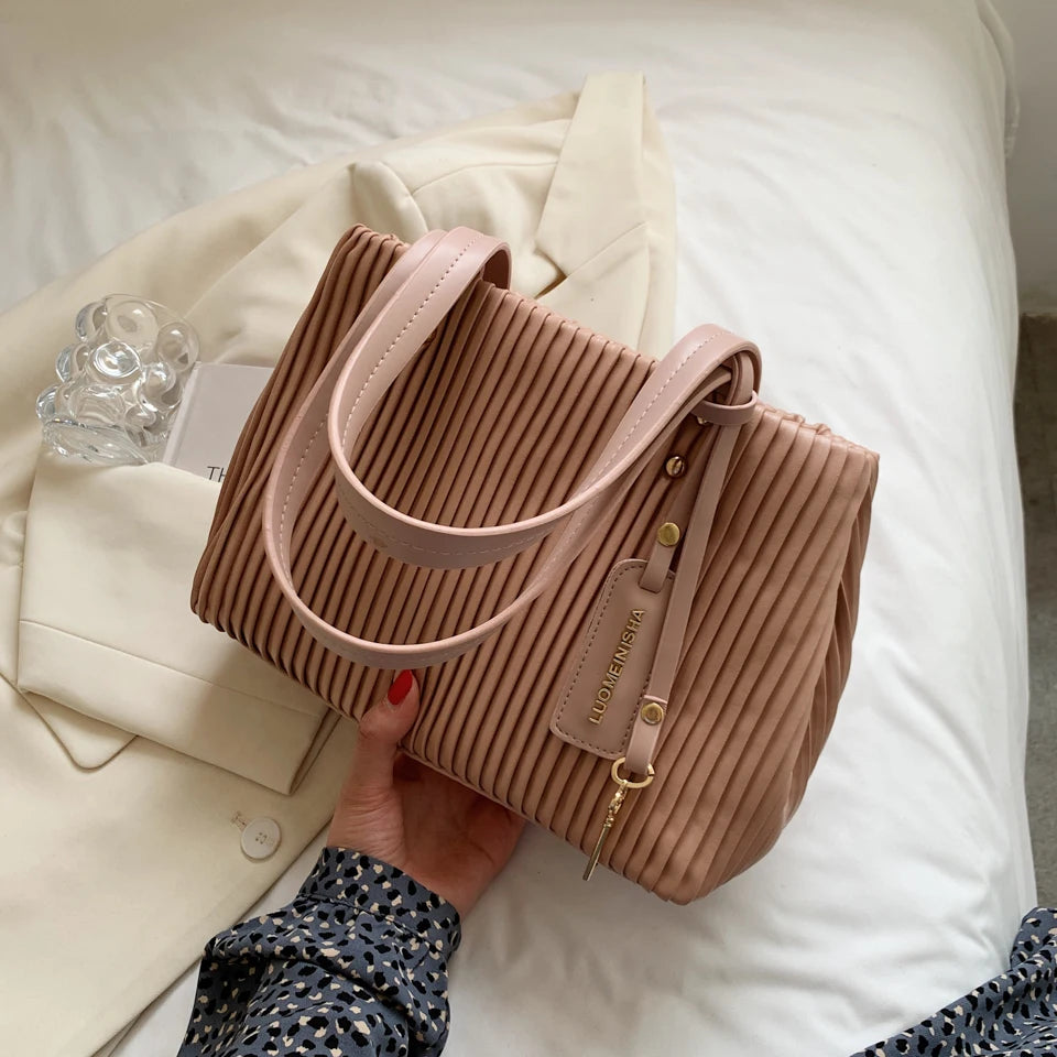 Pleated Style Tote Bag Women Handbag Shoulder Bags