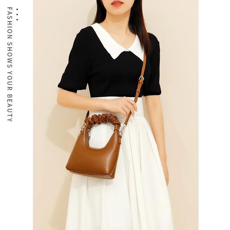 Pleated Top Handle Women's Handbag Soft Pu Leather Shoulder Crossbody Bags