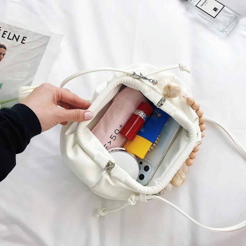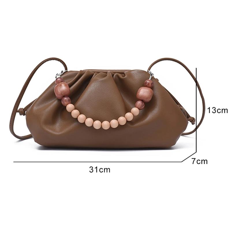 This small pleated shoulder bag is made of artificial leather, featuring a stylish chain strap. It's a solid and versatile accessory for women.