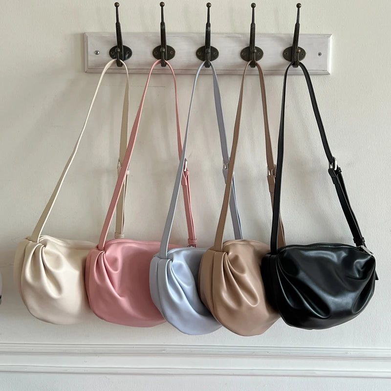 Plicated Shoulder Bag Soft Pu Leather Crossbody Bag
