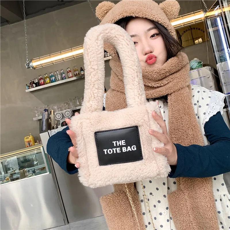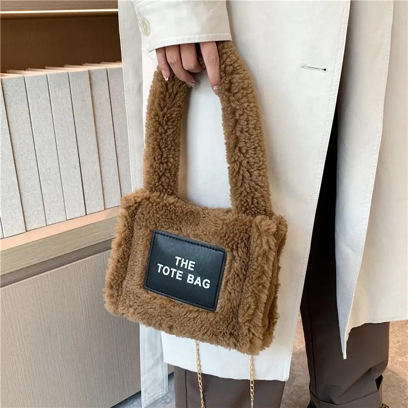 Stay stylish and warm with this plush bag that can be worn as a one shoulder crossbody bag. Featuring a small chain and a portable design, this tote bag is perfect for women during the winter season.
