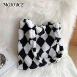 Plush Checkerboard Printing Pattern Underarm Bag Women Shoulder Bags