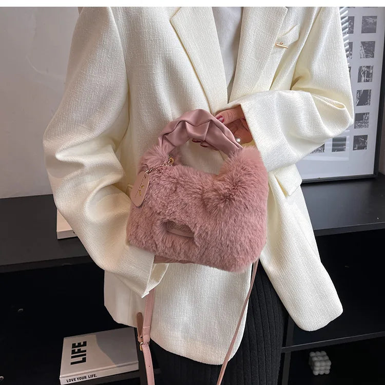 Plush Crossbody Bag Fur Handle Clutch Hobo Shoulder