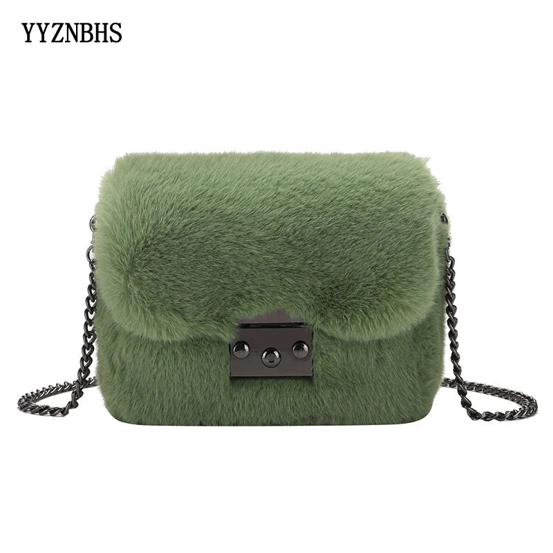 Plush Messenger Bag Chain Crossbody Bag Faux Fur Winter Bags Women Shoulder Bags