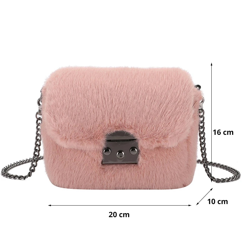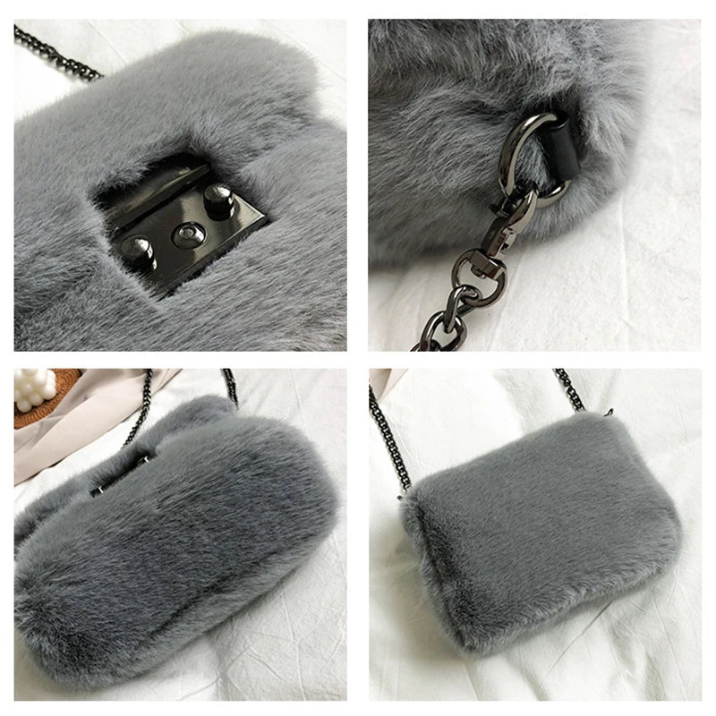 Stay stylish and cozy with this plush messenger bag featuring a faux fur design. Perfect for winter, this crossbody bag is a chic addition to any outfit.