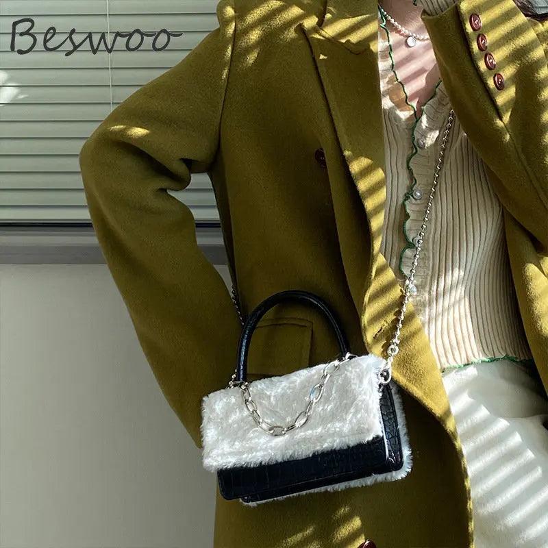 Plush PU Top Handle Bag for Women Chain Shoulder Crossbody Messenger Bag