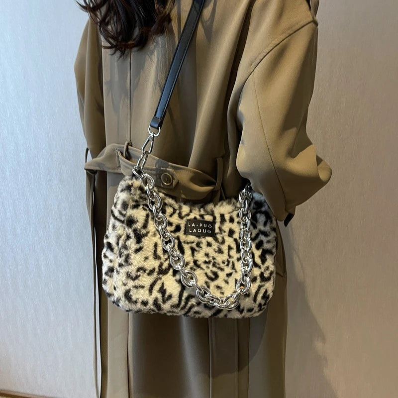 Stay stylish and warm with this plush shoulder bag, perfect for daily use in winter. Versatile design suitable for any occasion.