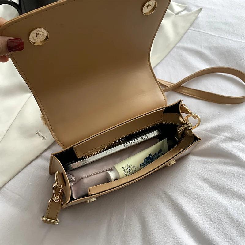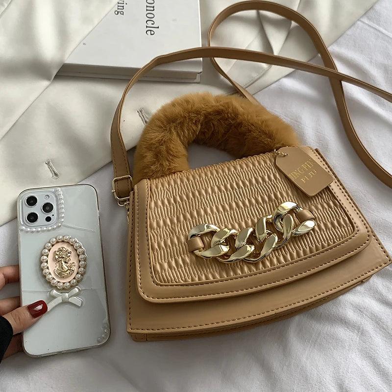 Plush Top-Handle Crossbody Bag Vintage PU Leather Handbag