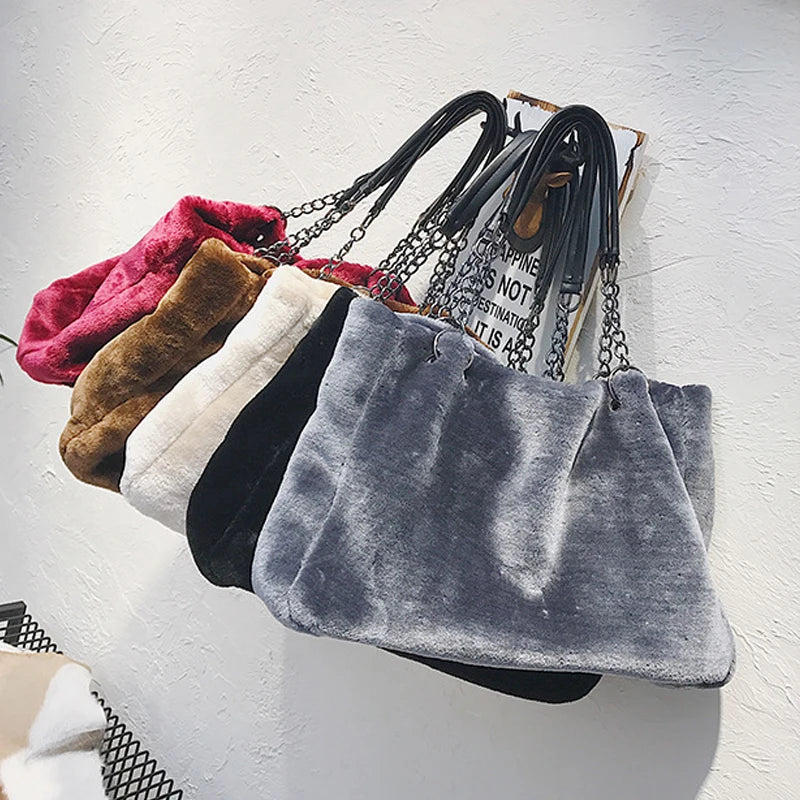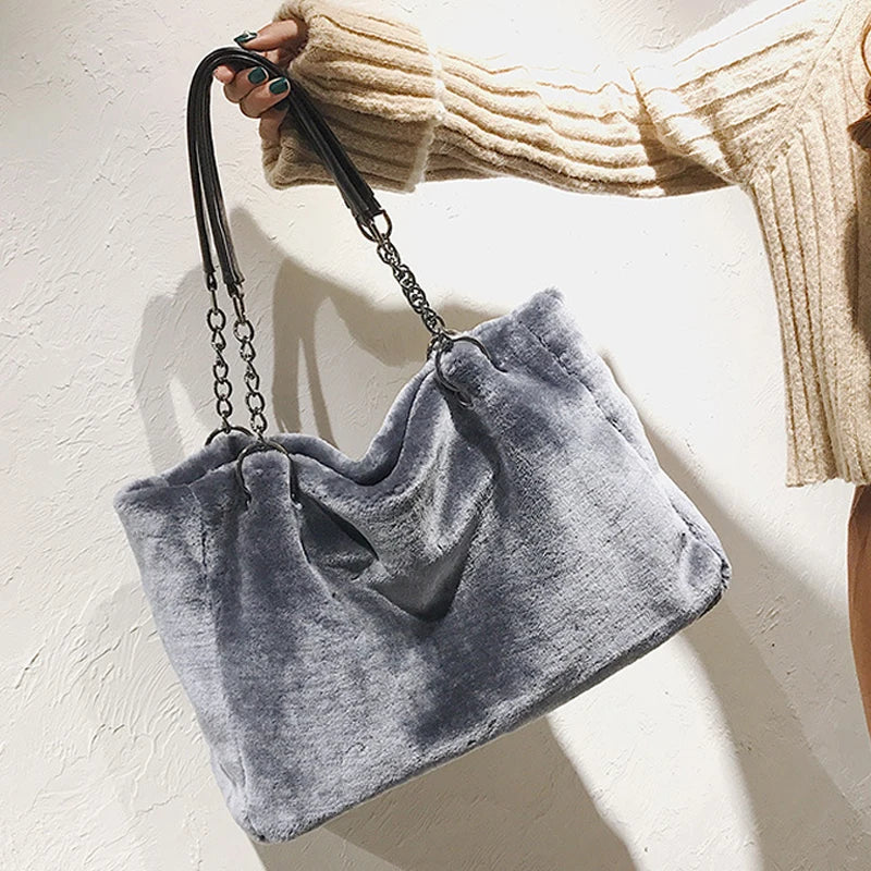 Plush Women Shoulder Bag High Capacity Totes Bags Hot Winter HPS971