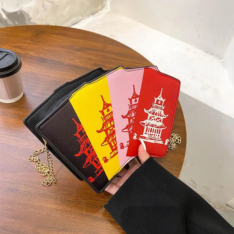 Poker Tower Dollar Cartoon Print Shoulder Bag Chain Messenger Handbag