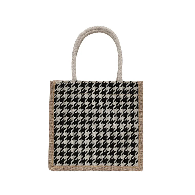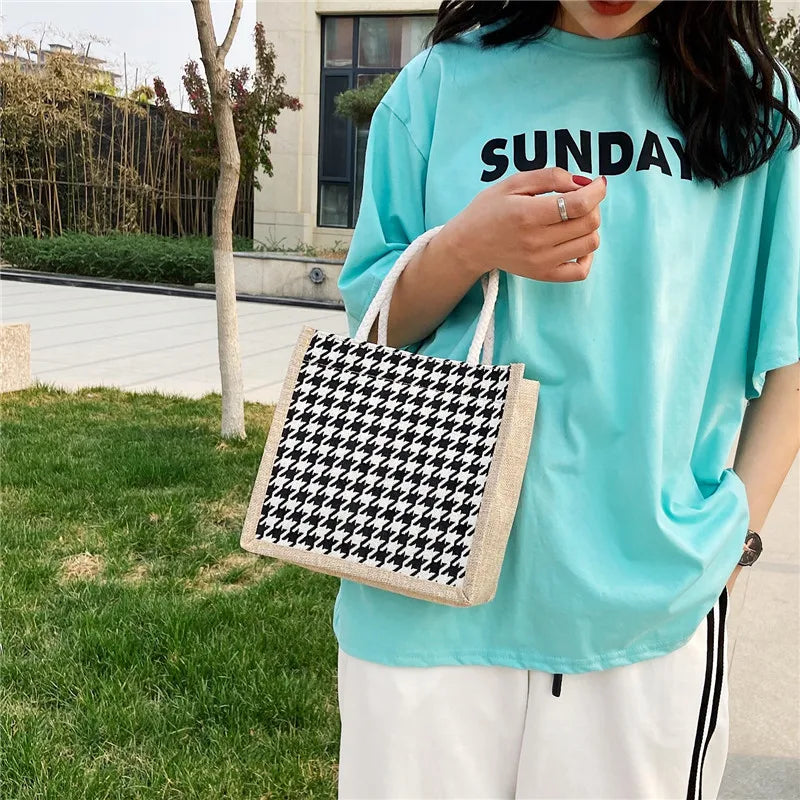 Portable Canvas Lunch Fruit Zipper Bag Tote Lattice Waterproof