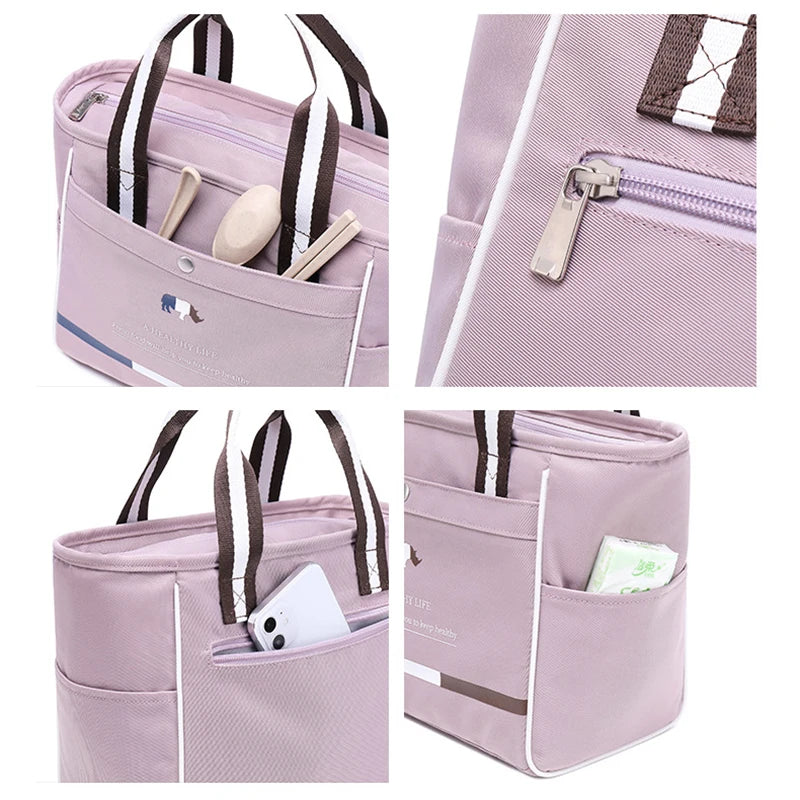 Portable Women's Thermal Lunch Bag Insulated Lunch Box Waterproof Picnic Tote