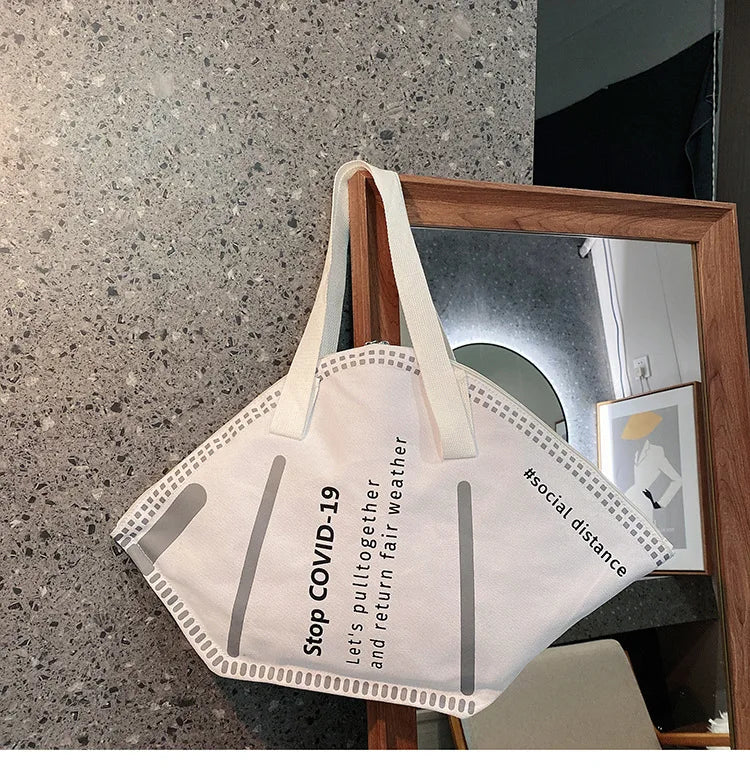 This creative tote bag is designed to carry masks and essentials in style. Perfect for spring and autumn seasons.
