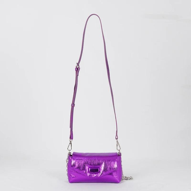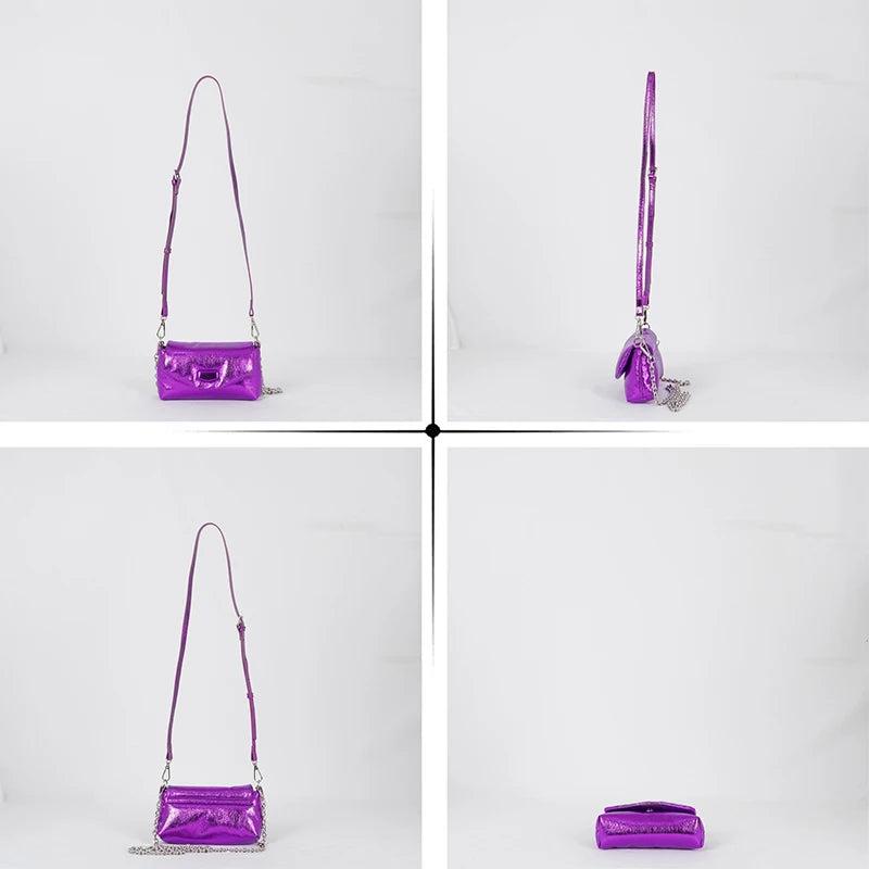 Elegant and stylish Pu crossbody bag for women featuring a leather chain design. This handbag exudes a solid metal wind style, perfect for a small purse carrying essential items.