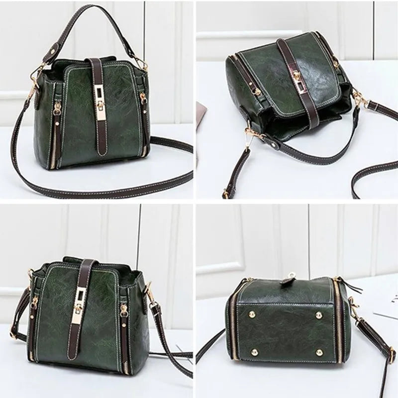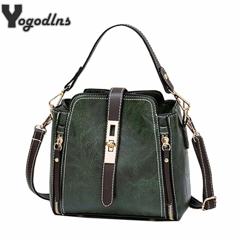 This fashionable bucket bag is made of high-quality PU leather, featuring a top handle and a detachable shoulder strap. It has a vintage wild style that is perfect for everyday use.
