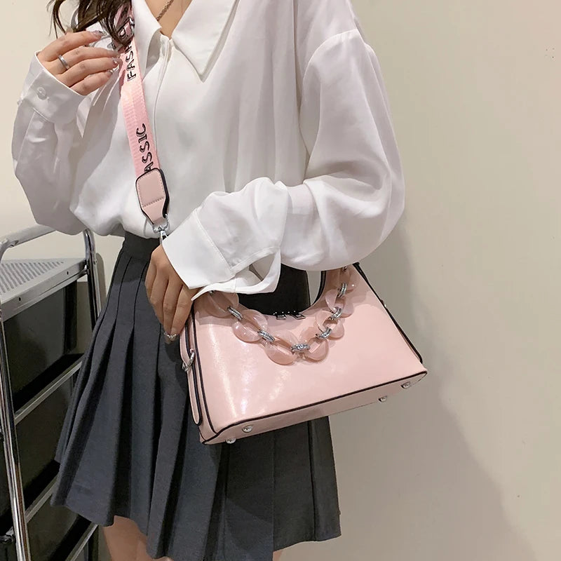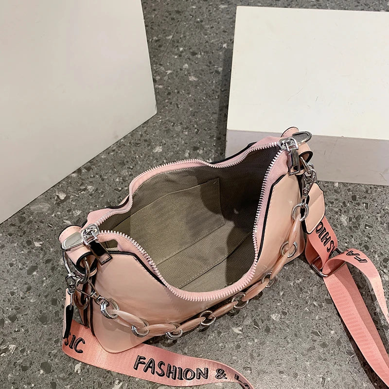 - Features a chain strap for a chic look