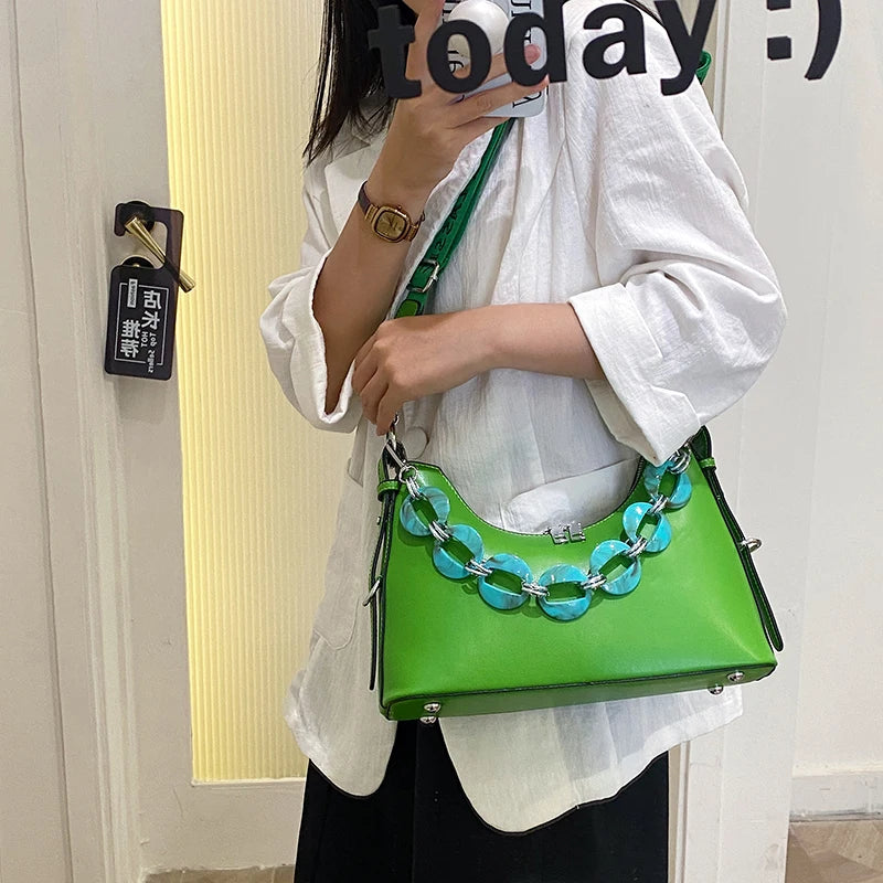 Stay stylish with this fashioinable PU leather chain handbag, perfect for everyday use. The high quality material and trendy design make it a must-have accessory.