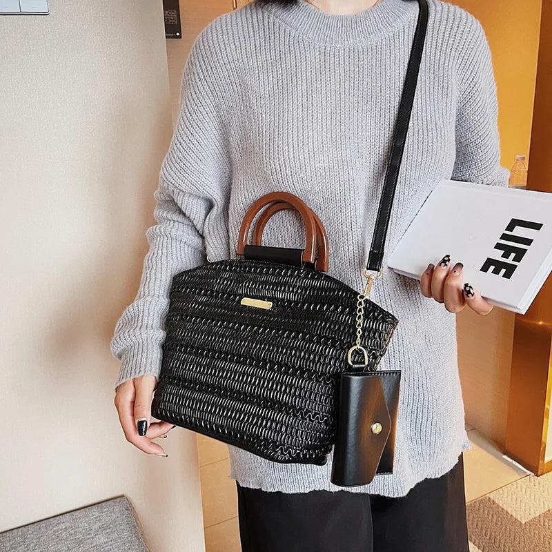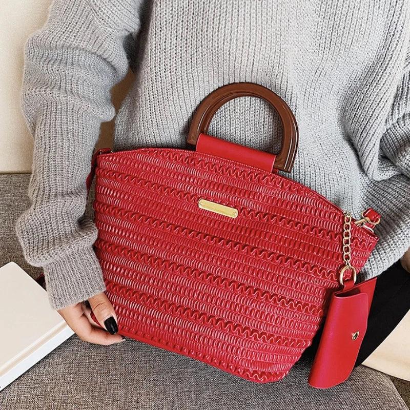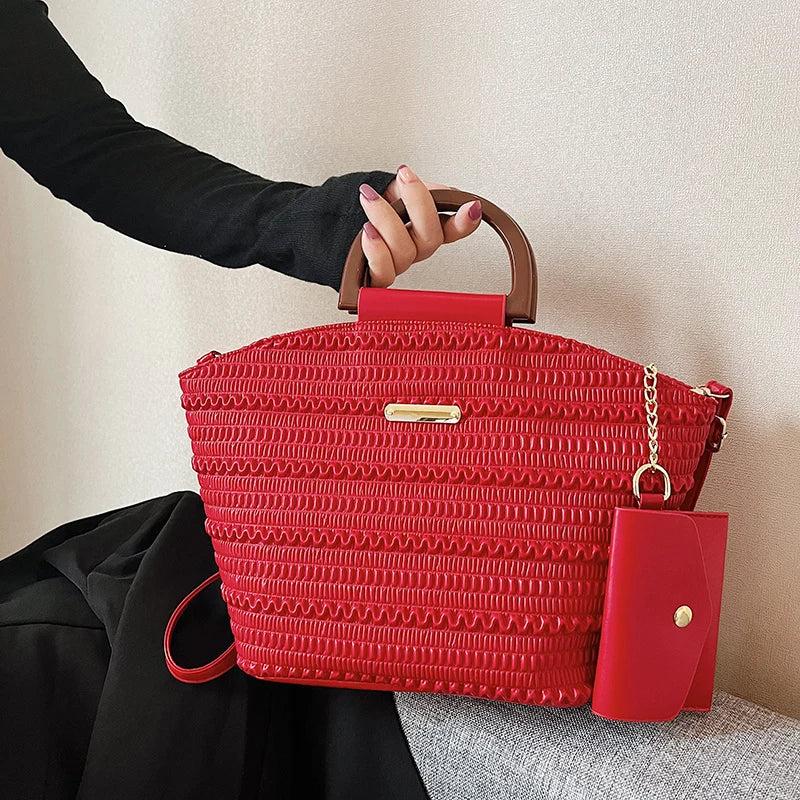 PU Leather Crossbody Bag Wooden Handle Tote for Party Cluth Purses