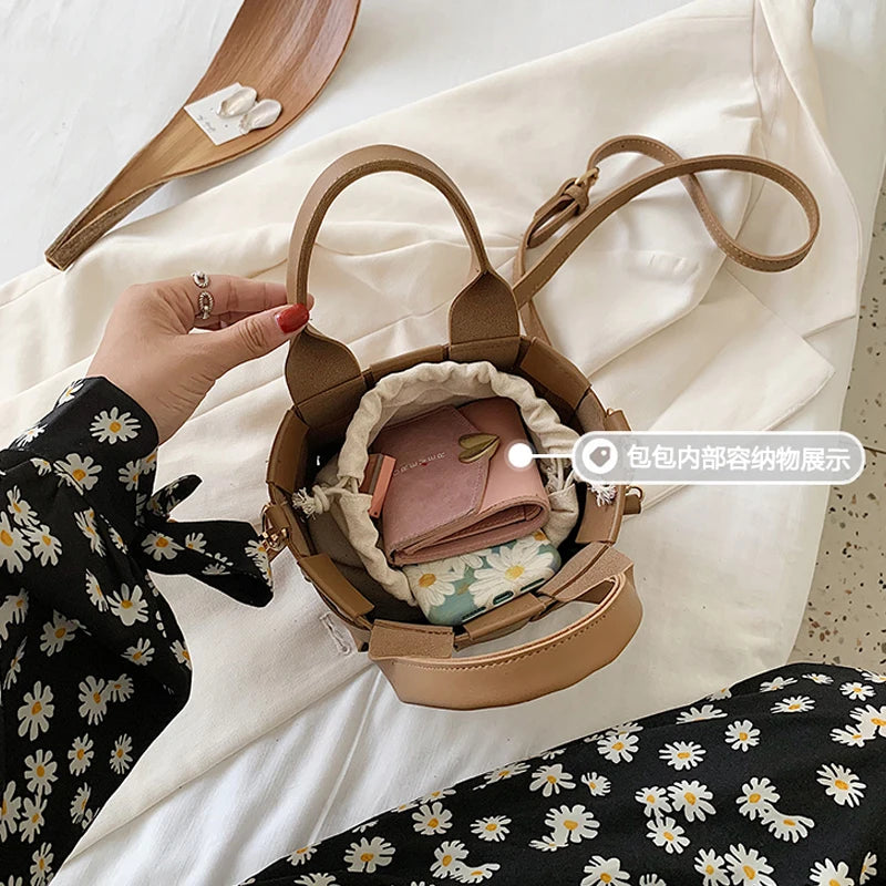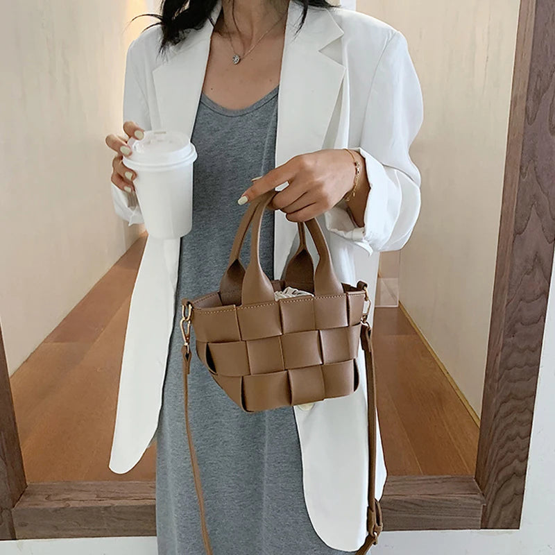 Stay stylish and organized with this Weave PU Leather Crossbody Bag. Perfect for travel or everyday use, this bucket bag combines fashion with functionality.