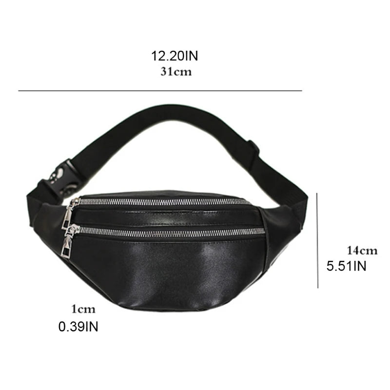 PU Leather Fanny Pack Waist Bag Zipper Pockets Adjustable Belt for Travel
