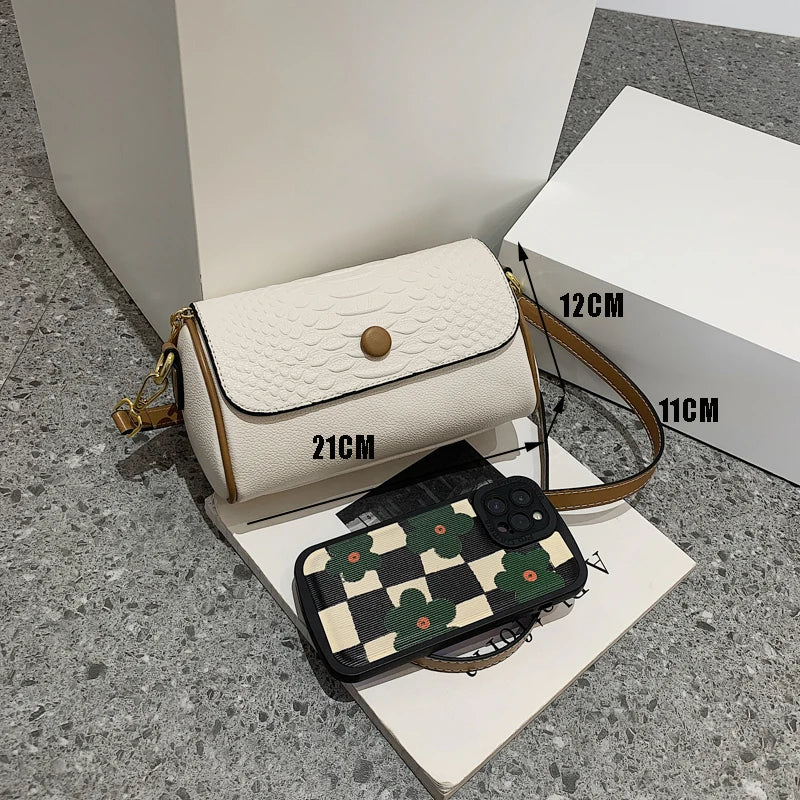 This shoulder bag is made of high-quality PU leather, featuring a flap design. It is perfect for women looking for a stylish and compact crossbody bag.