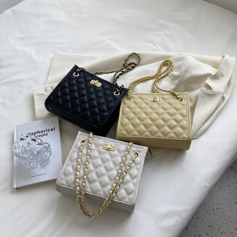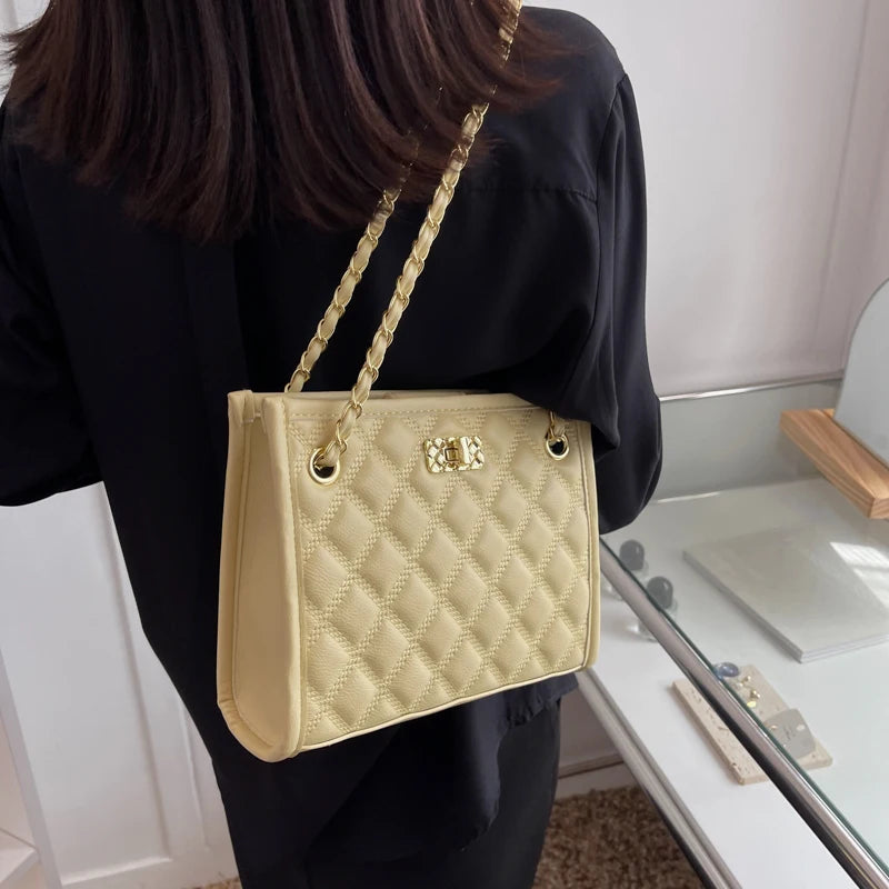 PU Leather Lattice Women Shoulder Bag Famous Ladies Casual Handbag