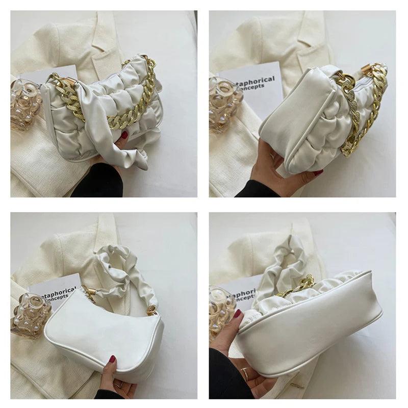 PU Leather Shoulder Bag for Women Chains Decor Hobos Handbag Clutch