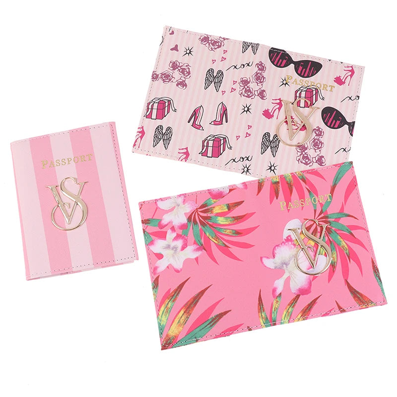 PU Leather Signature Striped Women Travel Passport Holder Cover