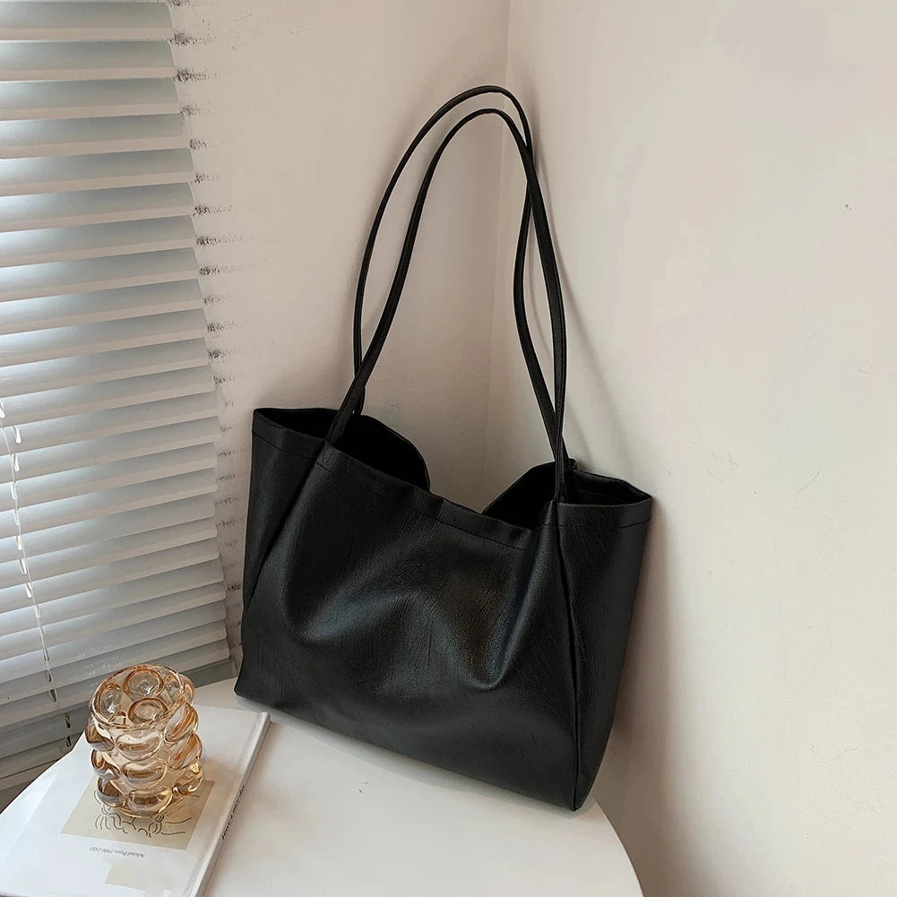 PU Leather Solid Women Shoulder Shopping Bag Casual Ladies Large Capacity Tote H