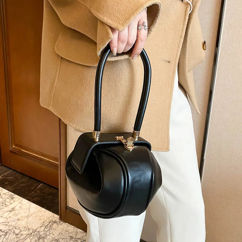 This stylish handbag is crafted from high-quality PU leather and features a top-handle design. It is perfect for carrying your essentials in style.