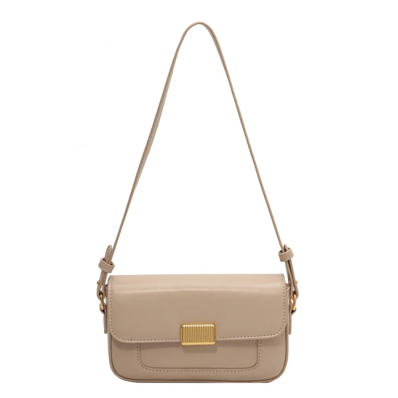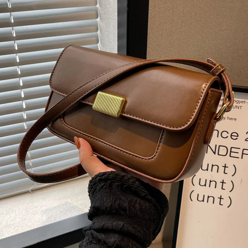 Elegant PU leather shoulder bag featuring a retro lock design. This crossbody handbag is perfect for adding a touch of vintage charm to your outfit.
