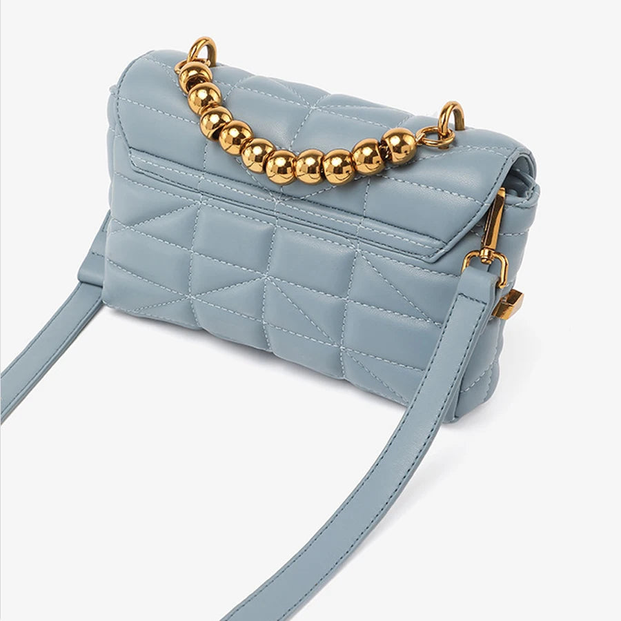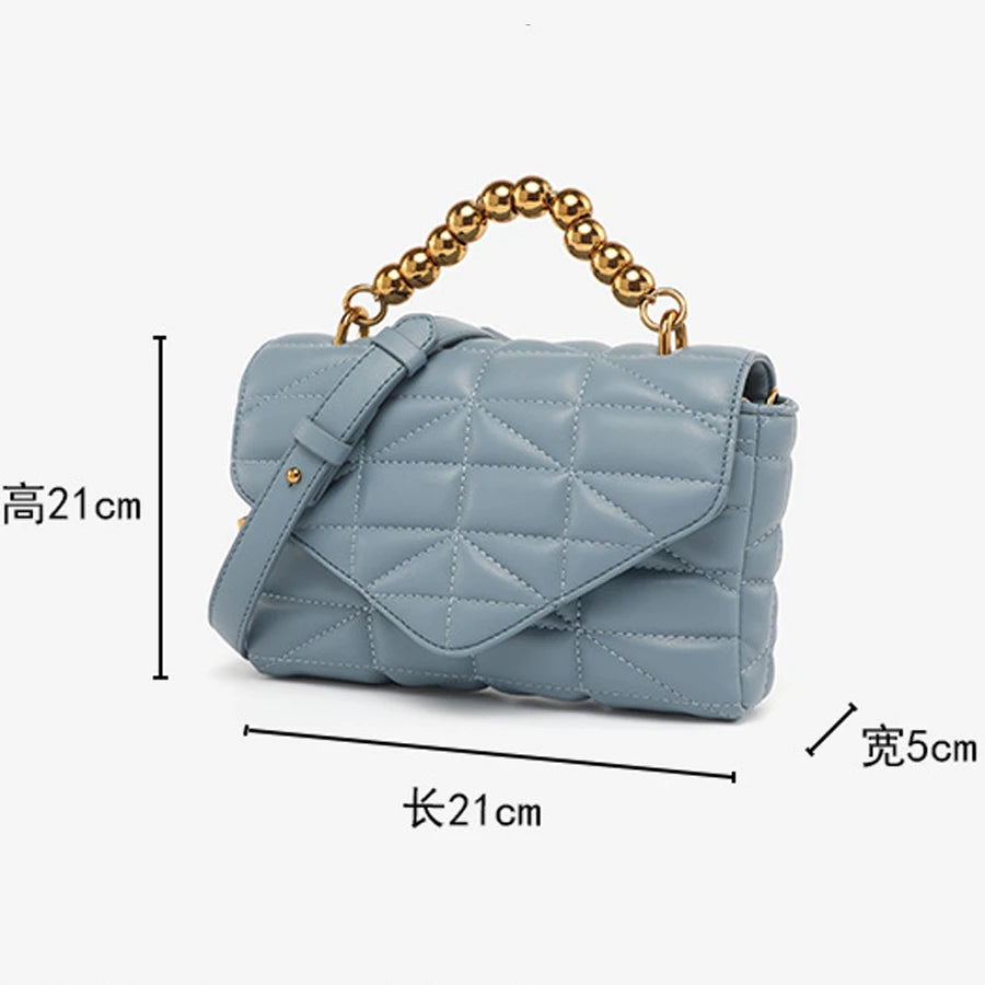 PU Quilting Padded Handbag Women's Ball Beading Handle Shoulder Crossbody Bag Mi