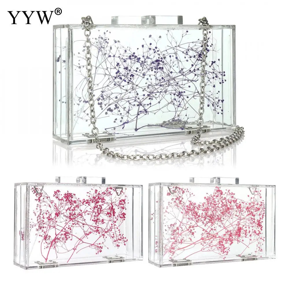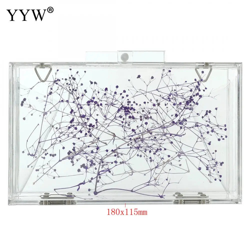 Purple Floral Transparent Shoulder Bag Acrylic Clutch Box Bag