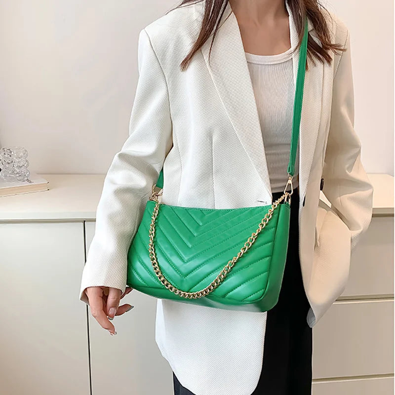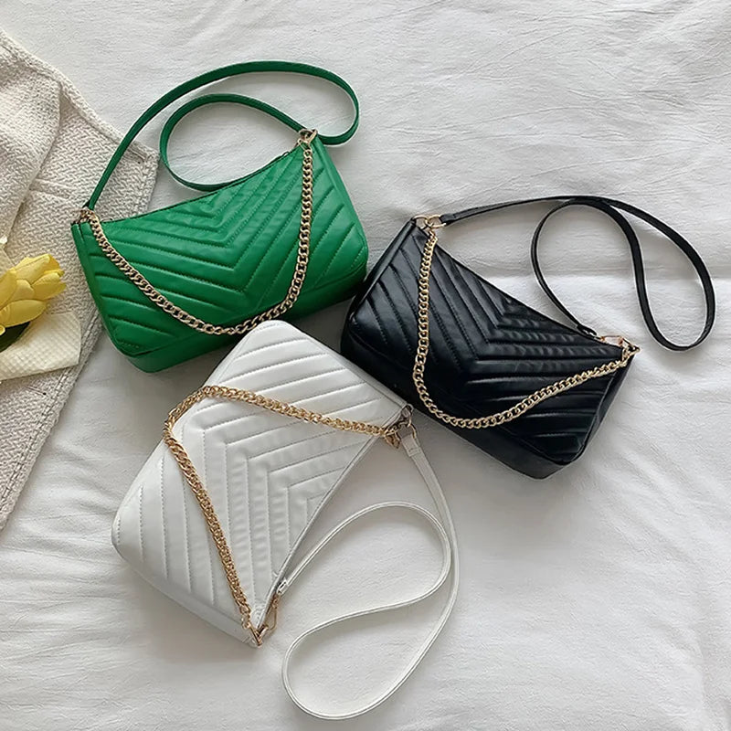 Elevate your style with this chic PU leather handbag that features a quilted design. Perfect for women on the go, this crossbody bag offers a trendy look with a chain strap and ample storage space. Stay organized and fashionable with this versatile accessory.
