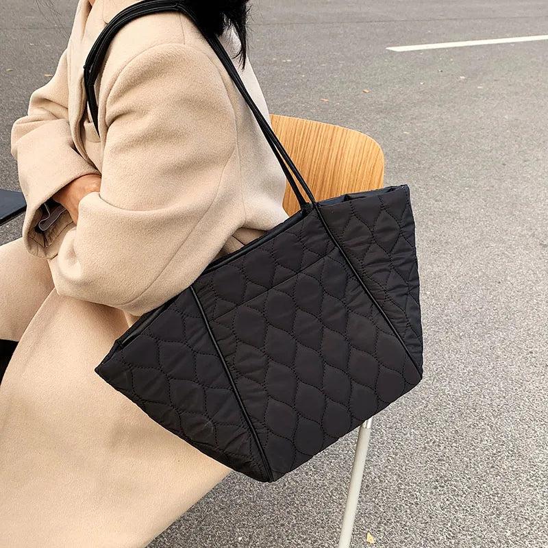 Quilted Large Tote Bag Winter Ladies Shoulder Bags Top Handle Women Handbag
