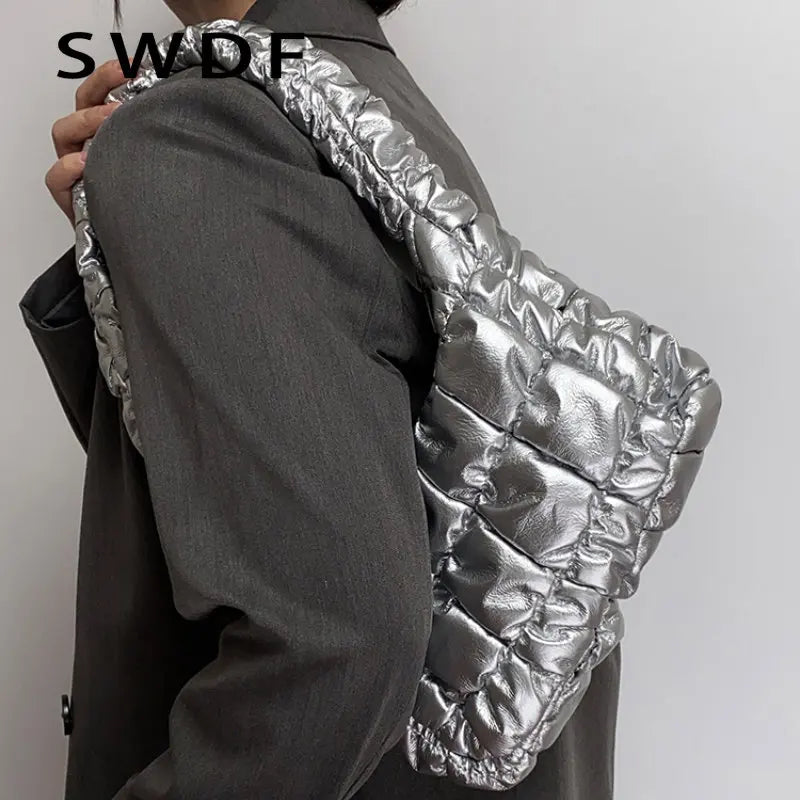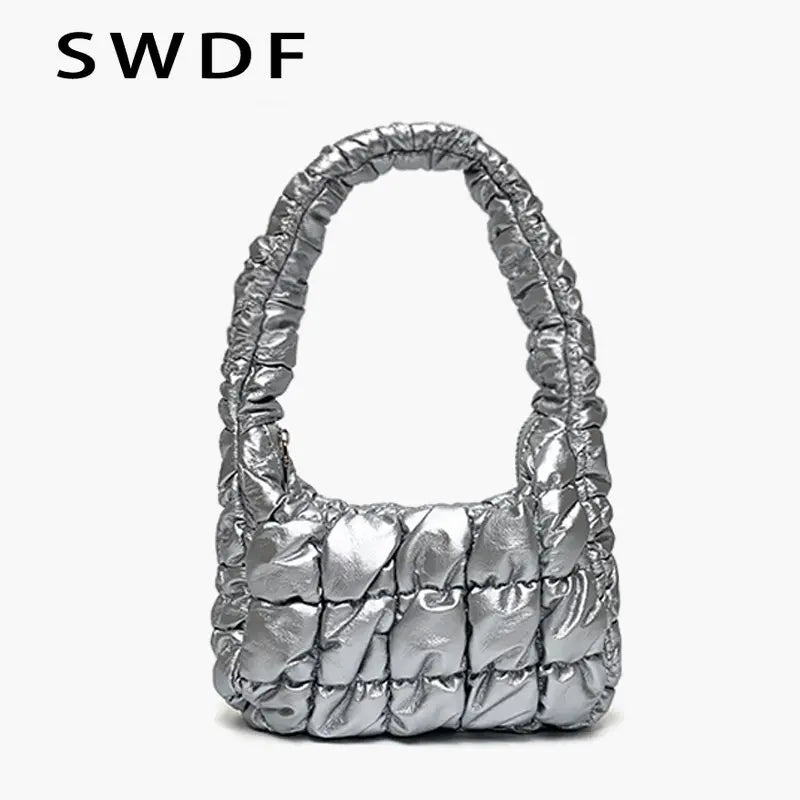 Quilted Shoulder Bag Padded Lady Handbags PU Leather Small Tote Casual Purse