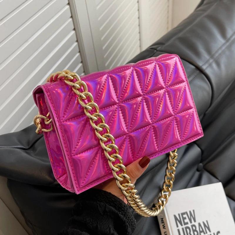 Elegant and stylish shoulder bag for women made of high-quality PU leather. Features a thick chain strap and quilted design. Perfect for everyday use or special occasions.