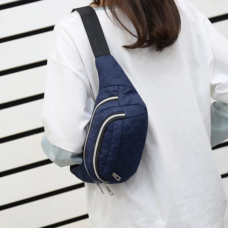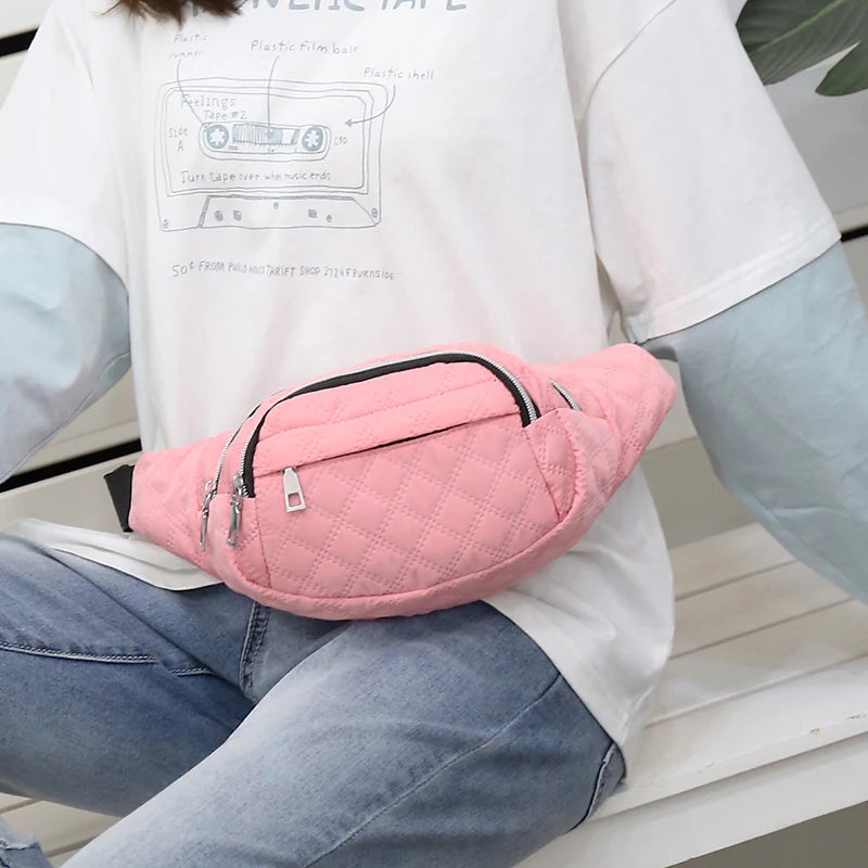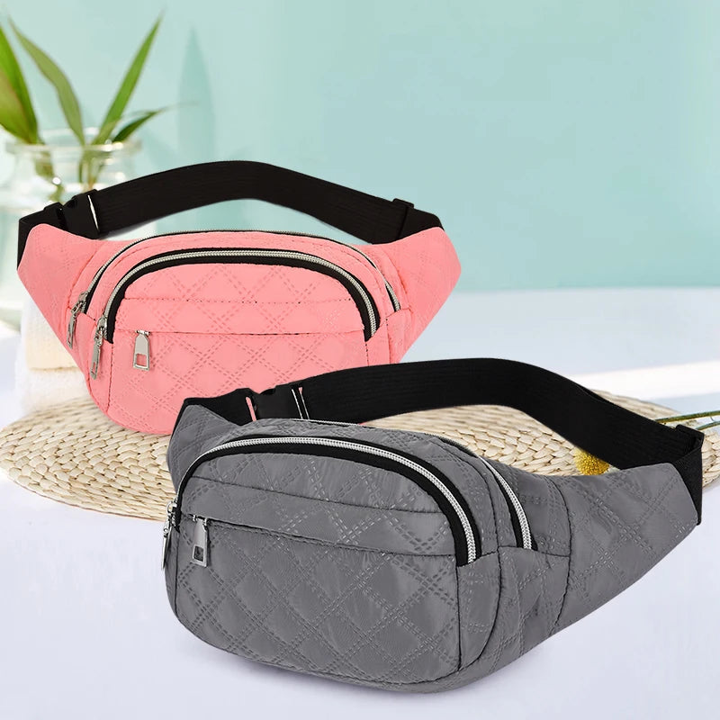 Stay organized on the go with this stylish and practical fanny pack. Perfect for travel, sports, and everyday use, this multi-layer bag offers ample storage space and a quilted design.