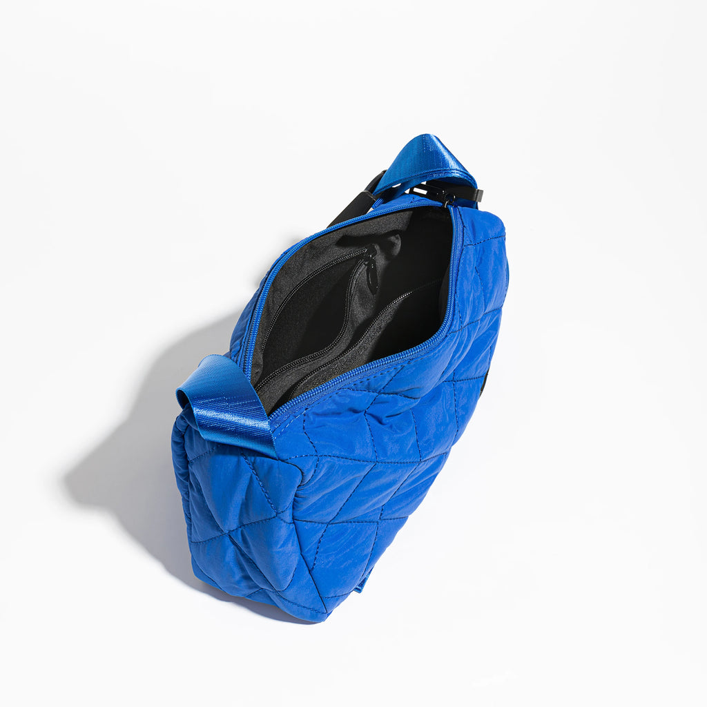 This padded quilted shoulder bag is designed for women on-the-go. It is a solid sport crossbody bag that can hold your phone and essentials.