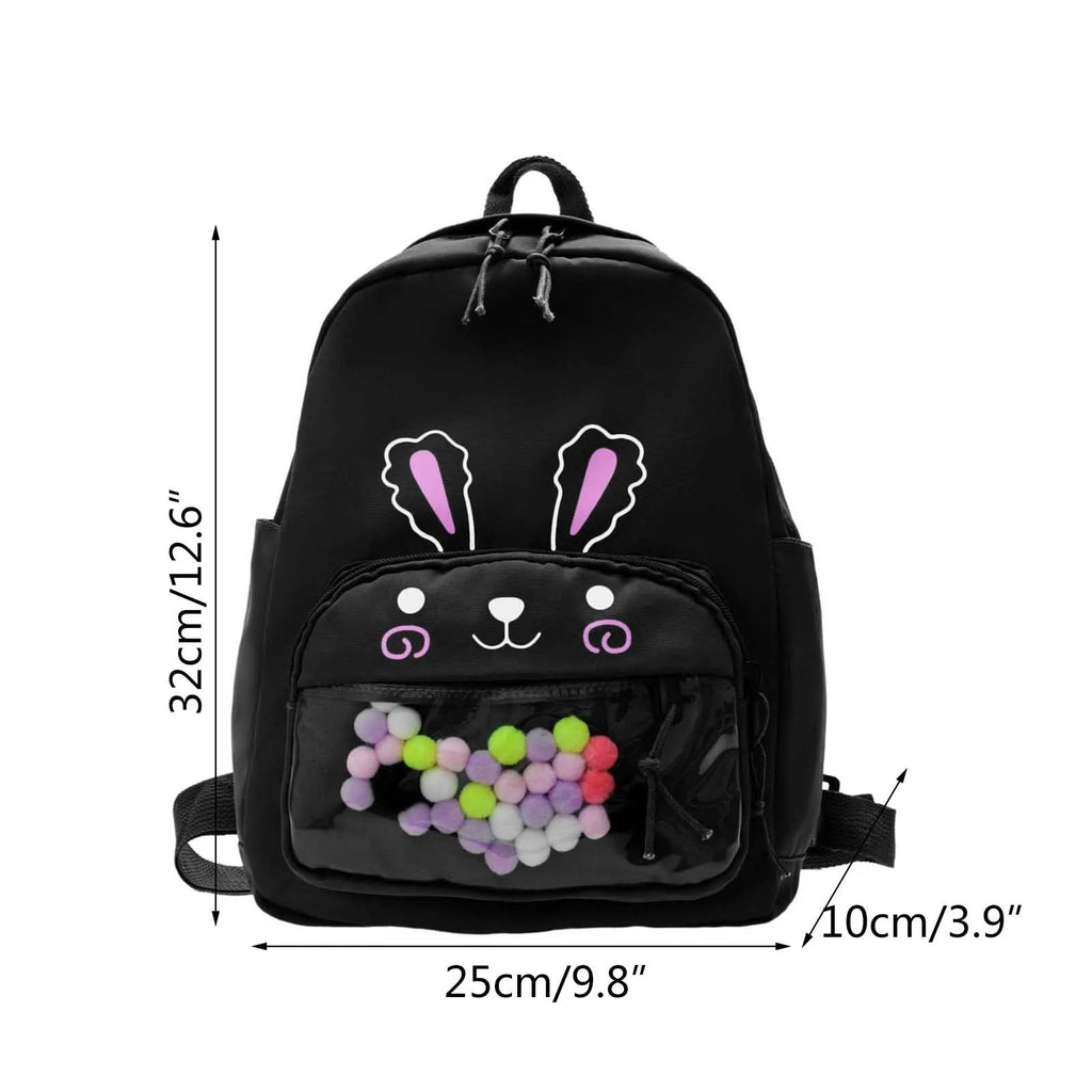 This adorable small backpack features a cartoon rabbit print, perfect for children to carry to school or on outings. Made of durable canvas material with double shoulder straps.