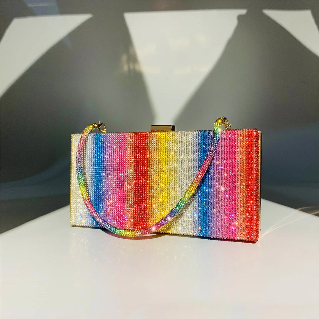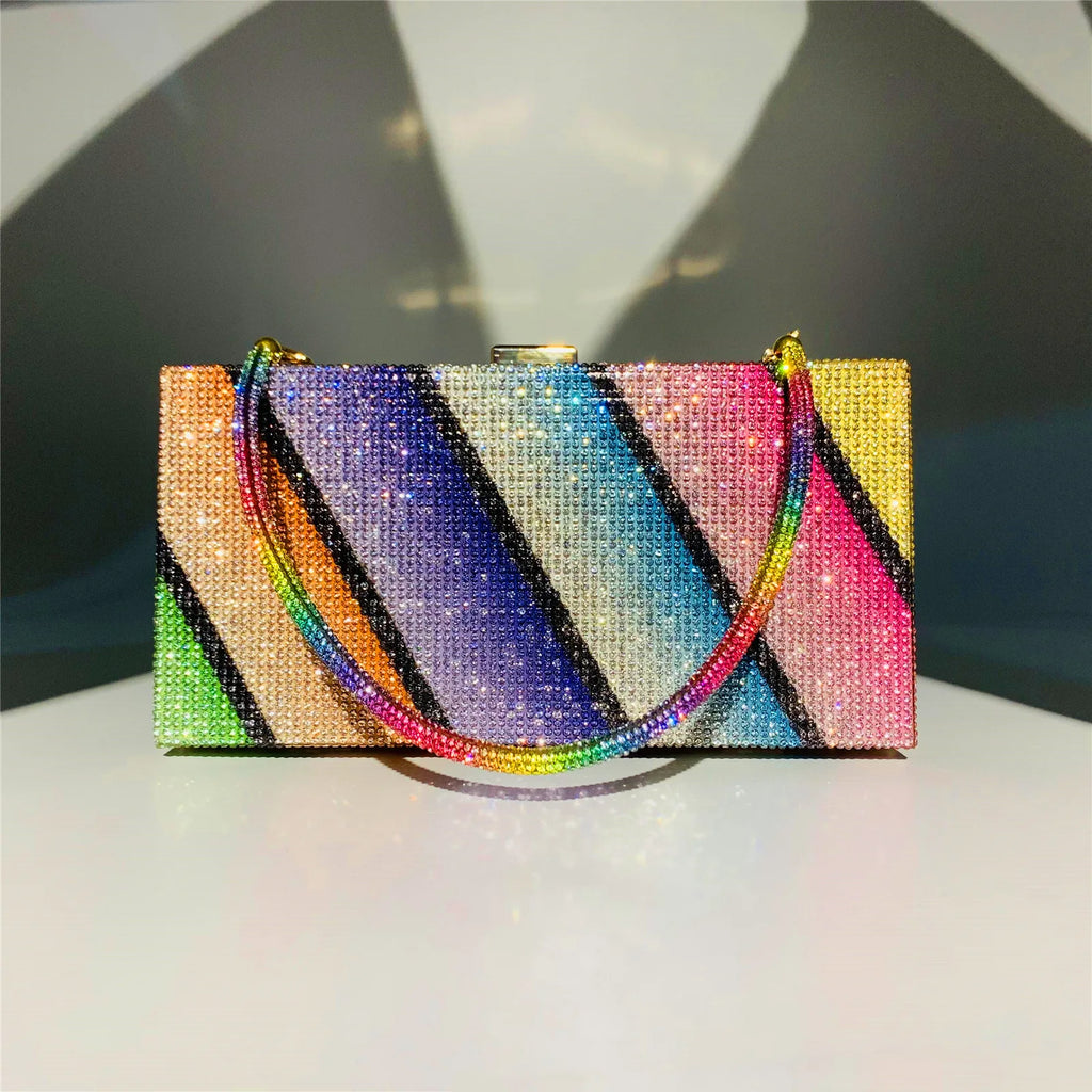 Rainbow Diamonds Evening Bag Plaid Women's Handbag Rhinestone Purse