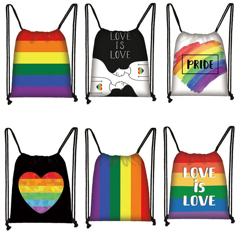 Rainbow Drawstring Bag Love Is Love Printed School Bag LGbt Gay Lesbian Backpack