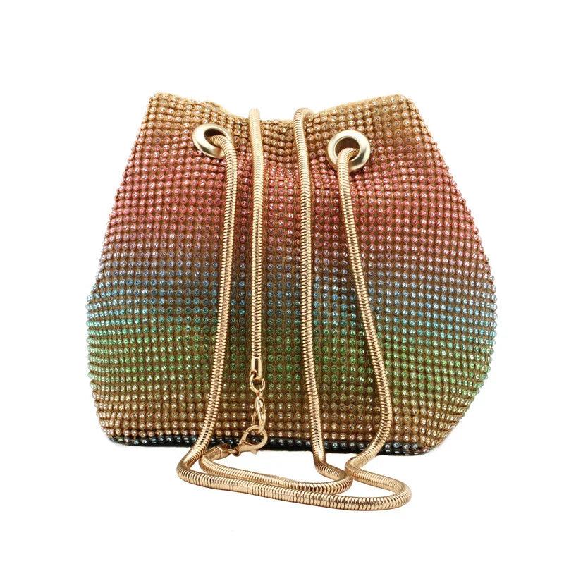 Rainbow Rhinestone Evening Bag with Snake Chain