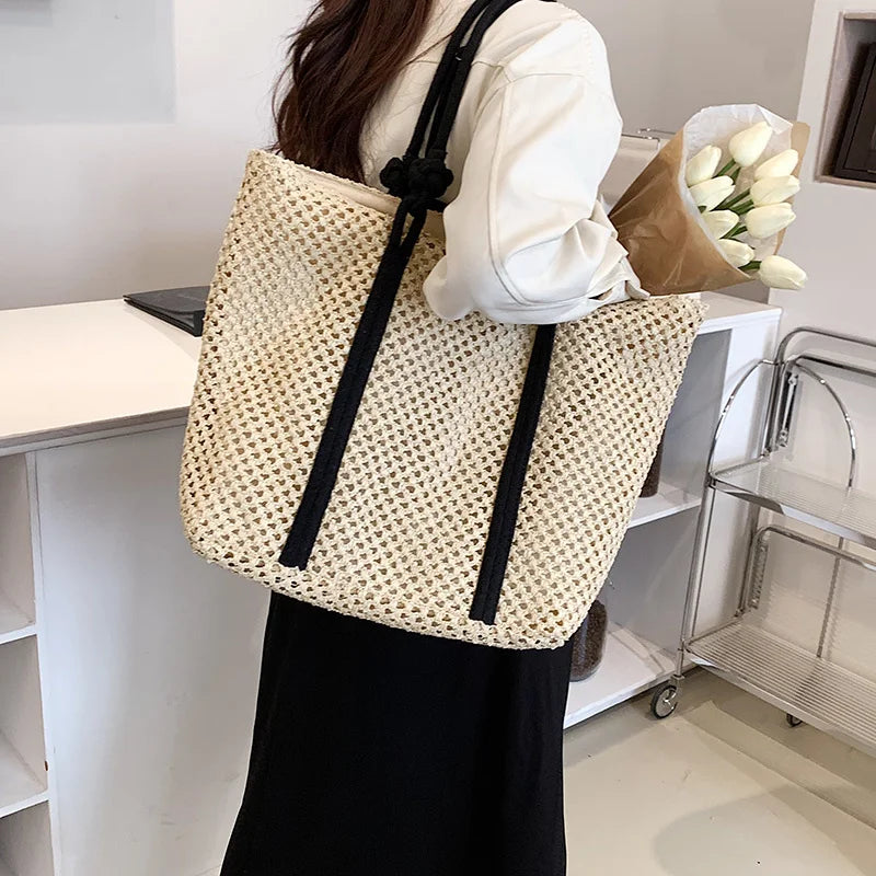Rattan Woven Handbags Big Beach Bags Casual Style Shoulder Bags